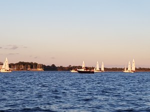 Chaque marina semble posséder son école de voile. Pas un seul après-midi n’est passé sans que nous n’ayons vu des jeunes s’initier à la voile. Beau temps, mauvais temps. Regarder les dériveurs virer de bord et monter leur spi à l’unisson, c’est de toute beauté ! Cet après-midi, un des exercices consistait à naviguer autour des mouillages. C’est alors qu’un défilé de dériveurs se sont faufilés entre les voiliers. J’appelle ça l’art d’insuffler la culture de la voile.