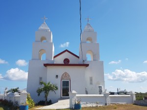 Le lendemain, nous avons visité les alentours de Clarence Town, résolument authentique. Plusieurs maisons sont abandonnées et placardées, sûrement à la suite des tempêtes et des ouragans. Deux petites églises constituent la signature très visible de cette île : l’église catholique Saints Pierre et Paul et l’église anglicane Saint-Paul. Ces églises ont été conçues par le Frère Jérôme, converti au catholicisme. Arrivé aux Bahamas en 1908, il a rebâti ces églises en pierres, autrefois de bois, afin de les protéger des ouragans. Nul doute que sa formation en architecture a laissé un héritage durable à l’Île. Lors de notre randonnée, les fidèles chantaient la messe… du parvis, nous préférions admirer le panorama.