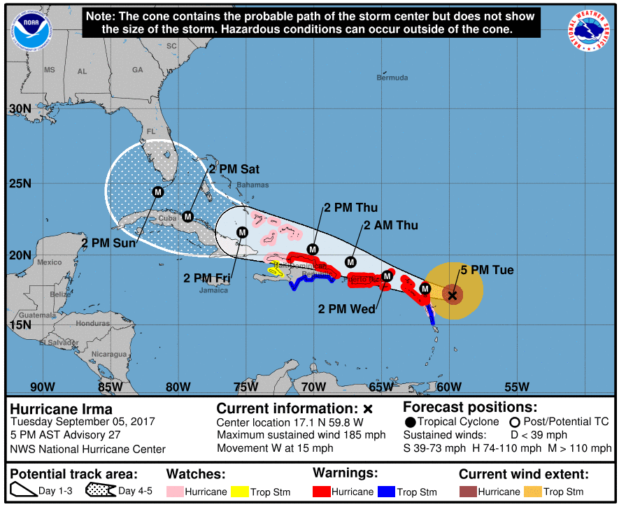 Irma_NOAA 5 septembre 2017 par Marlène Poster un commentaire Prévisions : NOAA (National Hurricane Center)