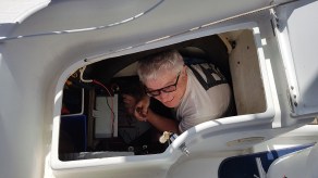 paul_Éolienne 20 janvier 2019 par Marlène Poster un commentaire Paul, tout petit, dans l’équipet arrière pour vérifier le panneau de contrôle de l’éolienne.